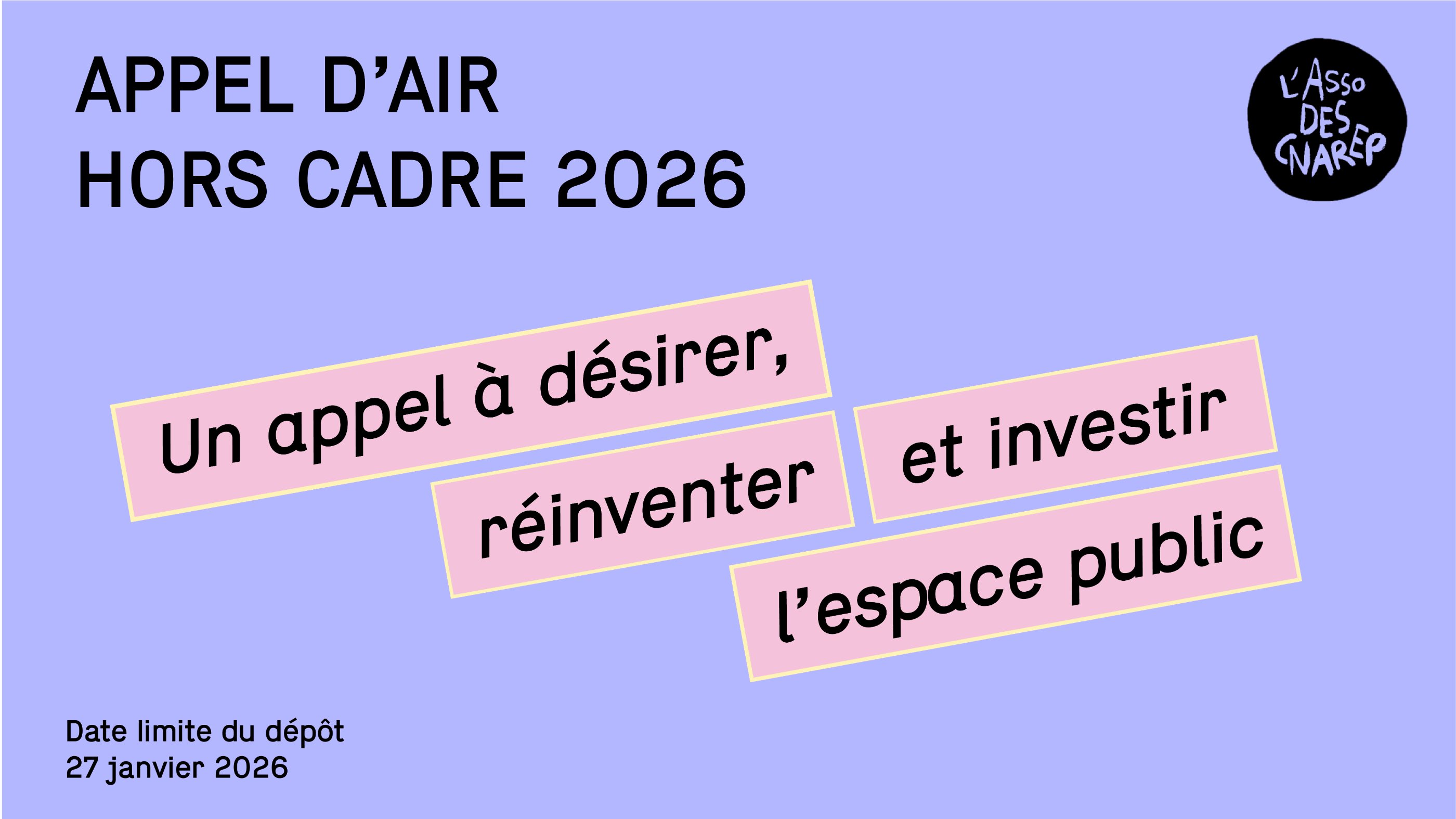 Depuis 2021, l’Association des CNAREP porte le fonds de production mutualisé Hors Cadre. Dans une diversité des formats et des écritures, Hors Cadre souhaite accompagner les artistes à l’endroit de la note d’intention, du désir d’une œuvre singulière pour l’espace public.