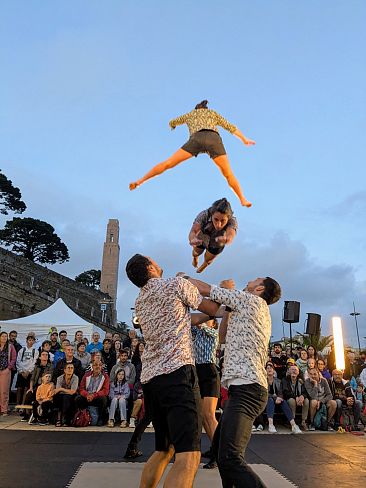 Kontact est la rencontre entre six acrobates, sans agrès ni filet. Avec leurs corps comme uniques instruments de travail, ils déploient dans des portés acrobatiques tout ce qu’ils ont de force et d’agilité, de puissance et de grâce, mais aussi de fragilité et de vulnérabilité. À l’image de leur propre maxime « à voltiger sans péril, on chute sans gloire ! », ils défient la hauteur et la gravité. Un spectacle léger et intimiste, rempli de joie, de convivialité et d’humour.