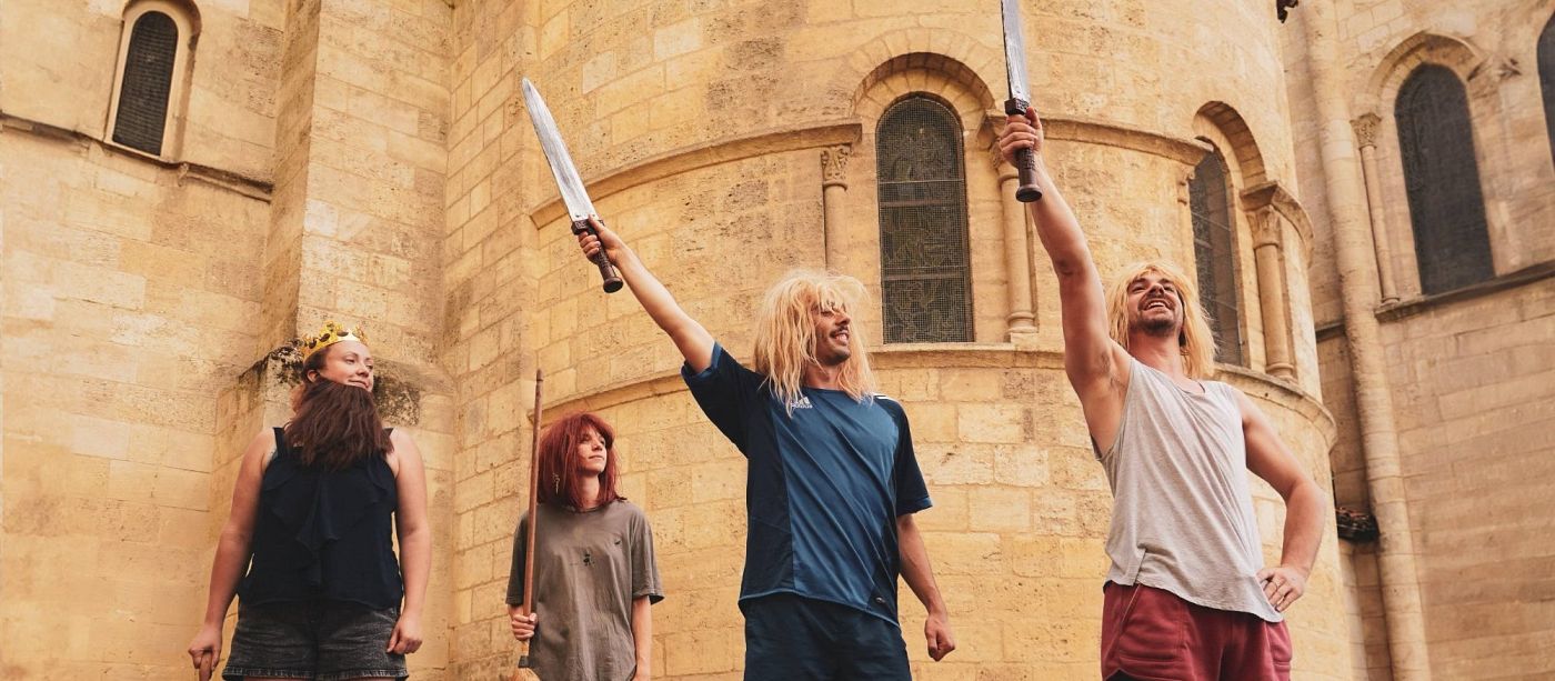 La compagnie Bravache forme un quatuor spécialisé en reconstitution ultraréaliste de l’histoire antique approximative. Avec des épées en plastique, des couronnes de papier et pas mal de faux sang, ils ont choisi le rire pour traverser, en version accélérée et ébouriffée, la terrible guerre de Troie. Pour leur première création à l’énergie débordante, les quatre jeunes interprètes bordelais enchaînent à toute allure chant, danse, cascades, effets spéciaux, faux ratages et vrais dérapages.