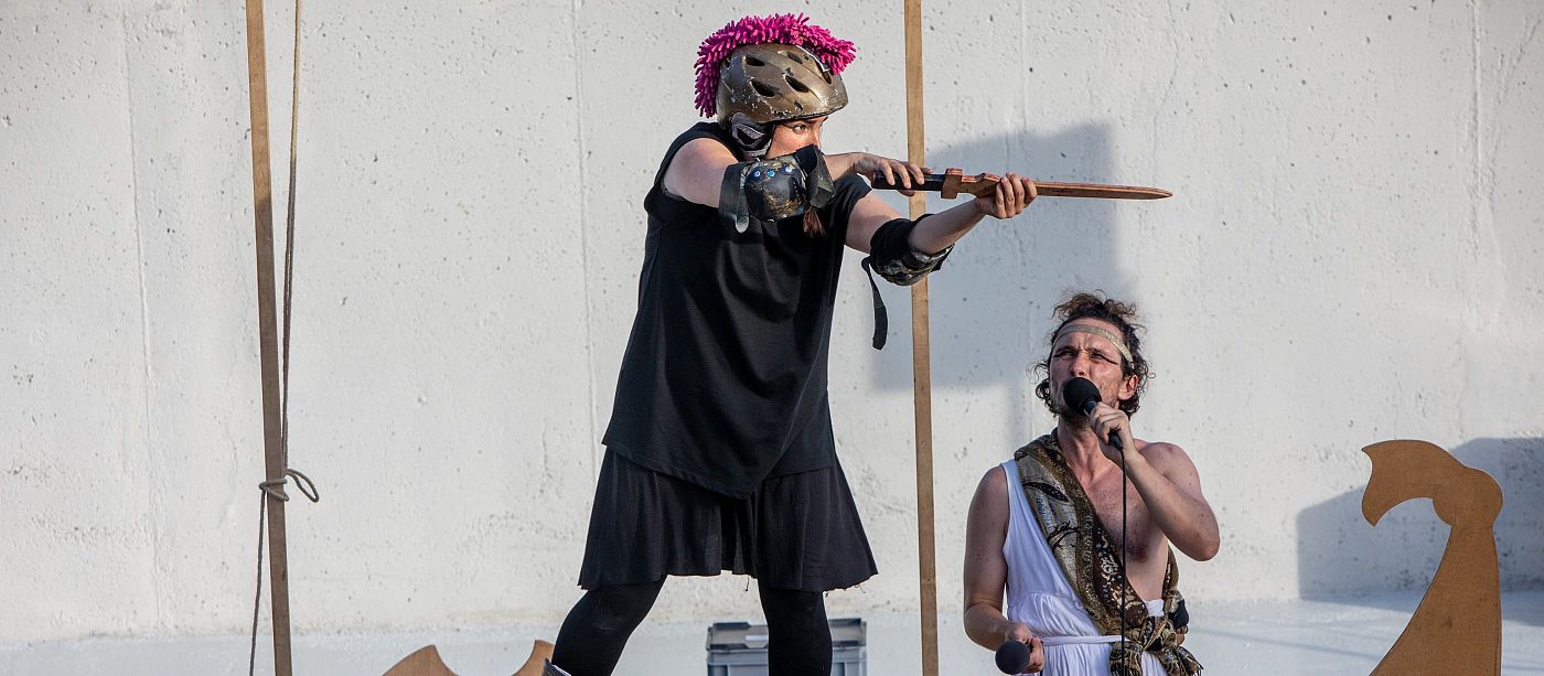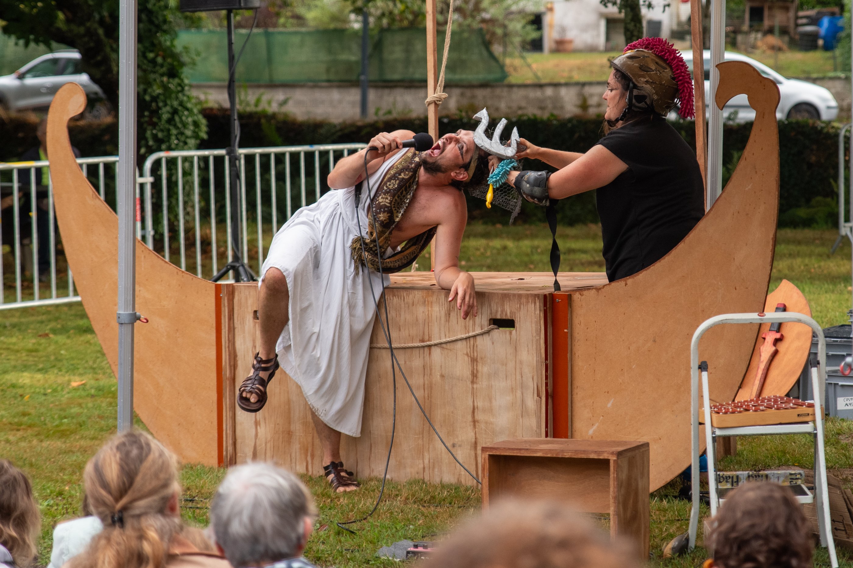 Vevey (Suisse)Morgane joue le rôle d’Alysse (à ne pas confondre avec Ulysse) et celui de tous les autres personnages. Damien, lui, est le narrateur. Il chante, rappe et adore se faire porter comme une rockstar par le public. Ensemble, ils nous retracent tout l’œuvre d’Homère avec des perruques, des bouts de bois, du carton, de la corde et surtout, beaucoup de joie.