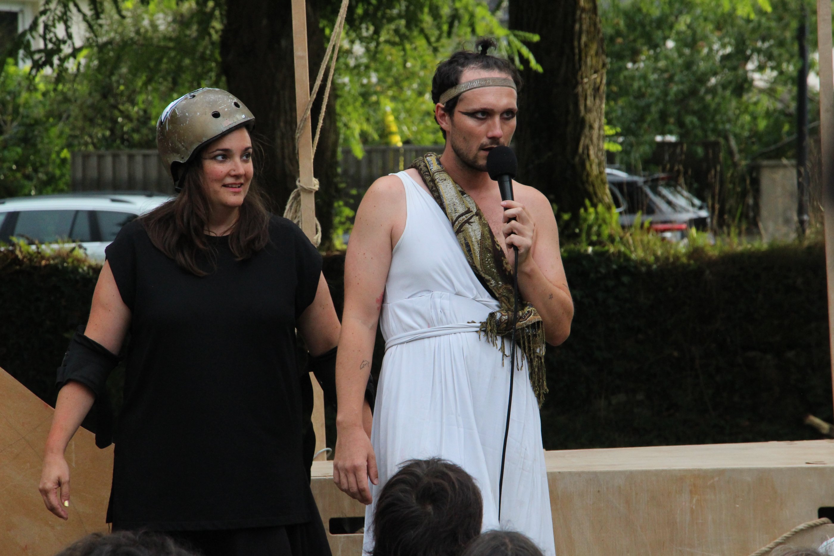 Vevey (Suisse)Morgane joue le rôle d’Alysse (à ne pas confondre avec Ulysse) et celui de tous les autres personnages. Damien, lui, est le narrateur. Il chante, rappe et adore se faire porter comme une rockstar par le public. Ensemble, ils nous retracent tout l’œuvre d’Homère avec des perruques, des bouts de bois, du carton, de la corde et surtout, beaucoup de joie.