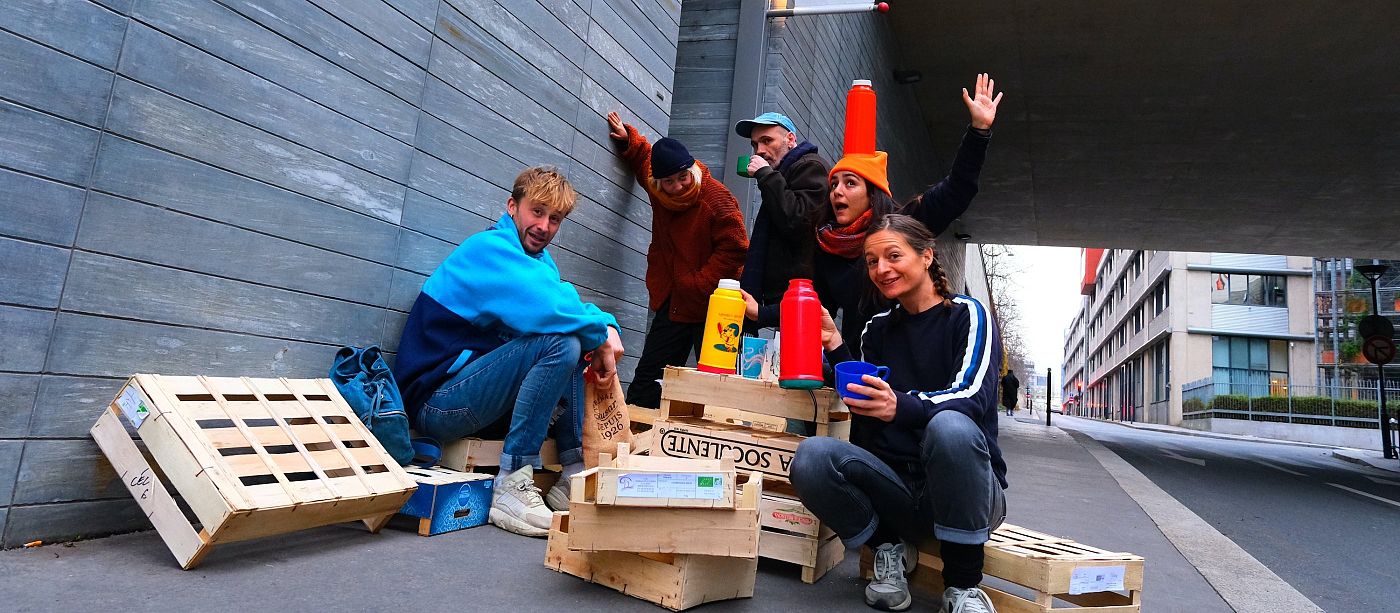 Production Collectif La Fugue / Coproductions Théâtre de Lorient, Centre dramatique national, L’Atelier 231 - CNAREP - Sotteville-Lès-Rouen, RADAR - Le Fourneau - CNAREP - Brest- Rue des Arts - Pays de Vitré, Centre Dramatique des Villages du Haut-Vaucluse, RueWATT - Coopérative de rue et de cirque, Act’Art - action artistique et culturelle en Seine-et-Marne, Le Pôle - Arts en circulation - scène conventionnée d’intérêt national, Le Colombier des Arts / Soutiens Région Île-de-France pour l’écriture des Saisons dans le cadre d’"Écrivain.e en Île-de-France" en partenariat avec le lycée Utrillo de Stains, Conseil Départemental du Morbihan, Karwan et la Cité des arts de la rue - Marseille, Aube de la création - Chalon dans la rue - L’Abattoir - CNAREP - Chalon-sur-Saône, La Transverse - Corbigny, Animakt