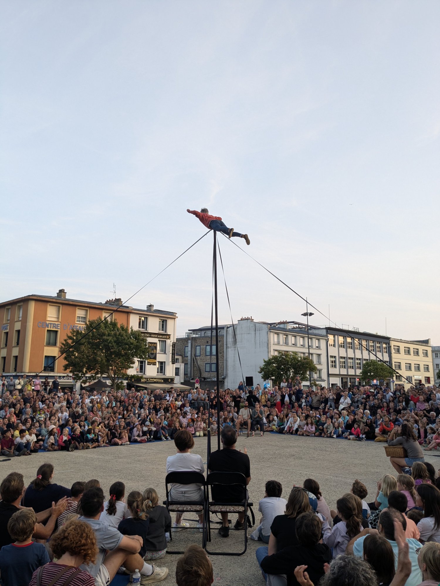 Subtile mélange de mât chinois, danse, mime et humour, Playground est un spectacle lauréat de plusieurs prix internationaux qui s’élève à plus de 8 mètres de haut. Imaginée par le circassien Miguel Rubio, la mise en scène dépend des spectateurs qui le soutiendront physiquement par leur regard mais aussi par leurs corps, assis sur 8 chaises reliées au mât, formant partie intégrante de la scénographie et participant activement à l’acte circassien.