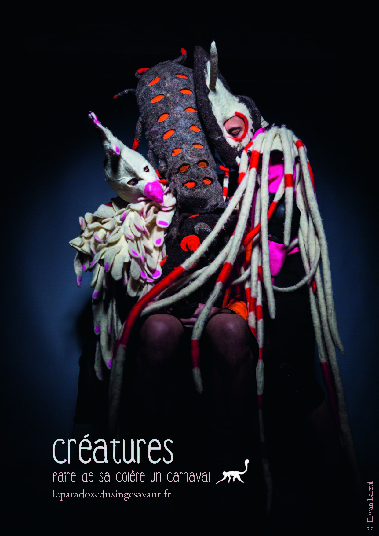 Créatures est une ode à l’expression des émotions et à la capacité de chacun à transformer sa colère pour inventer son propre monde. C’est l’histoire d’un trio d’enfants qui n’entendent pas l’autorité. Ils pressentent que le monde des adultes est une vaste fumisterie. Ces trois-là se sont écrit une lettre, petits, à eux-mêmes adultes, contenant une promesse : celle de faire de leur monde de grands un carnaval. Ce spectacle invite le public à convoquer sa rage de vivre pour prendre part à un grand charivari.