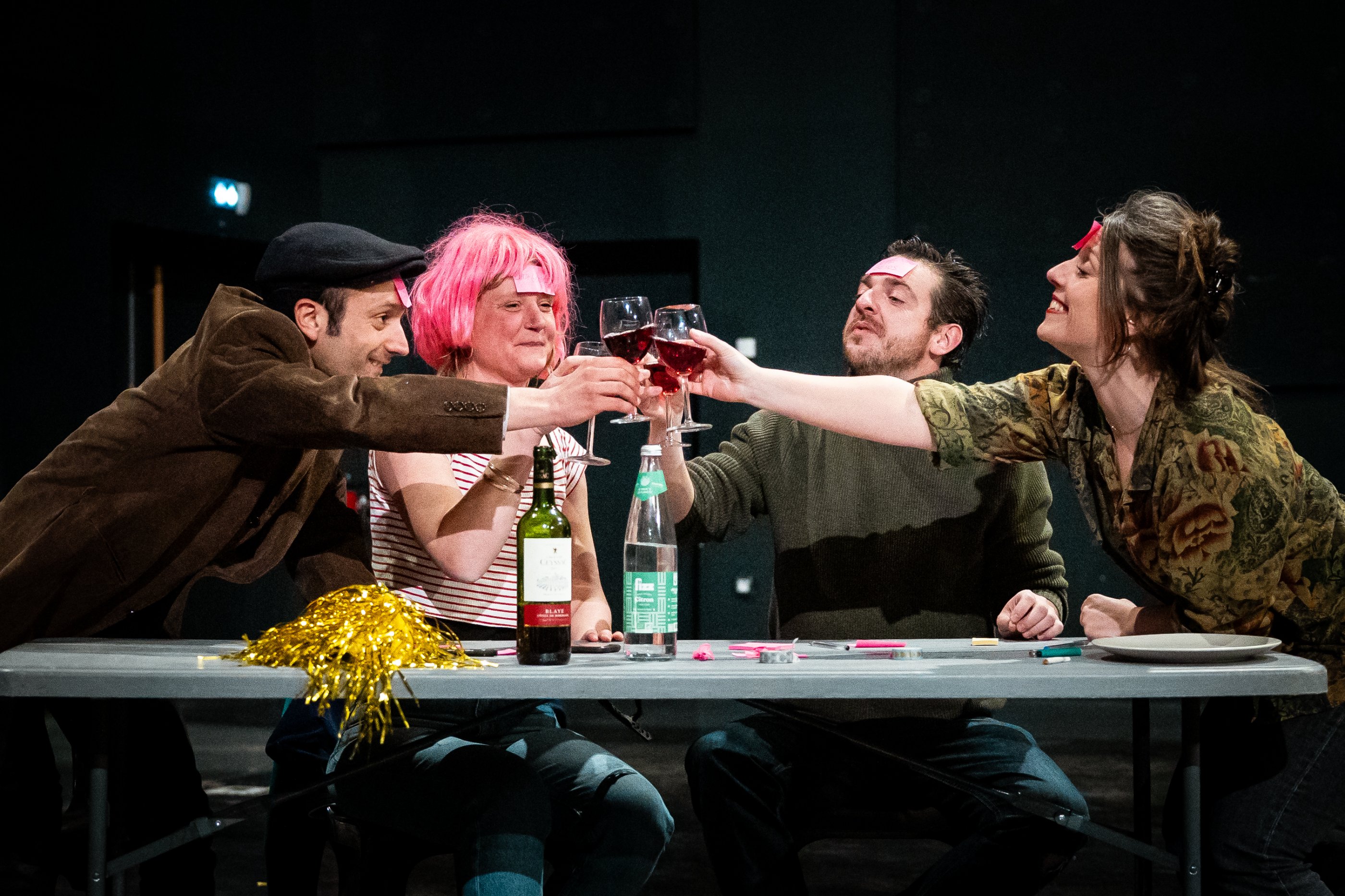 Création collective dirigée par Sarah Daugas Marzouk. Écriture et mise en scène Sarah Daugas Marzouk / Interprètes Brice Lagenèbre, Anaïs Petitjean, Marlène Serluppus et Pierre-Damien Traverso / Régisseur plateau et interprète Nicolas Douchet / Assistante mise en scène Céline Bertin / Chorégraphe Julia Berrocal / Décoratrice et accessoiriste Marie Bernardin / Costumière Camille Granger.